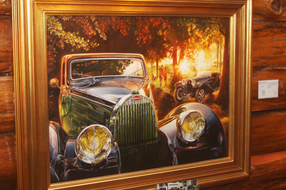 La única obra plástica que no remitía a las competencias dentro del remate fue este acrílico sobre tela de Jorge García llamado «Bugattis» y en la que aparece en un atardecer campestre y en primer plano el frente de una Type 57 Atalante y detrás de ella una Type 55. Salió a remate en u$s 3.500 y por esa misma cifra se la llevaron en el entorno de uno de los mayores coleccionistas de Ferrari en Argentina.