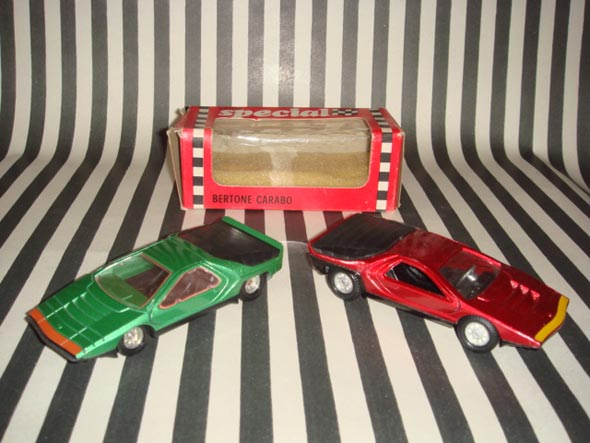 Un día llego a mis manos el primer ejemplar de Carabo. Era un Solido francés de la década del noventa (#172, escala 1/43), con un buen lejos y no tan buen cerca, pero bien logrado en las proporciones del auto real, sobre todo cola y ruedas, y portando el color original de la vettura. Teniendo una vaga noción de la cosa, me interné en los libros para descubrir que era realmente el Alfa Romeo Carabo.