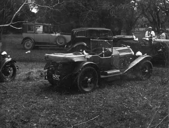 El que sale con la cámara es Eduardo Ortega, fotógrafo del diario La Razón, por entonces dueño del Bentley 3 litros de 1927 (N. del E.: parece estar sacándole fotos a una Bugatti Type 40). Atrás aparece “El Capitán” Porreti hablando con Guillermo Vago. Otros autos que se ven en esta foto son un Ford A (Hale), el Bentley 4,5 litros (Porreti), un Rolls-Royce Silver Wraight y un Phantom III (Chuzo González padre).