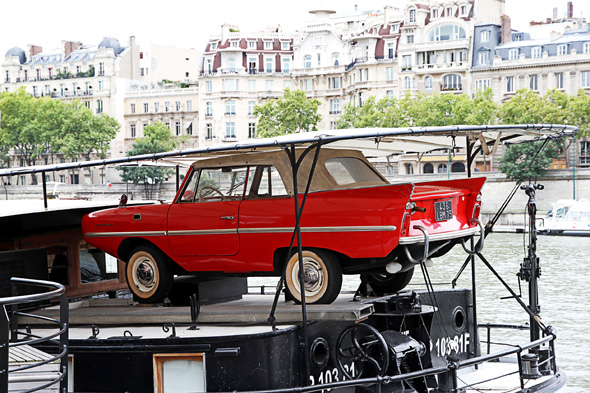La cuestión es que, como los gringos que salen de paseo con sus monstruosas casas rodantes y el auto a la rastra atrás a modo de tráiler, este maestro parisino tiene barco y móvil anfibio, todo con vista a la Tour Eiffel…