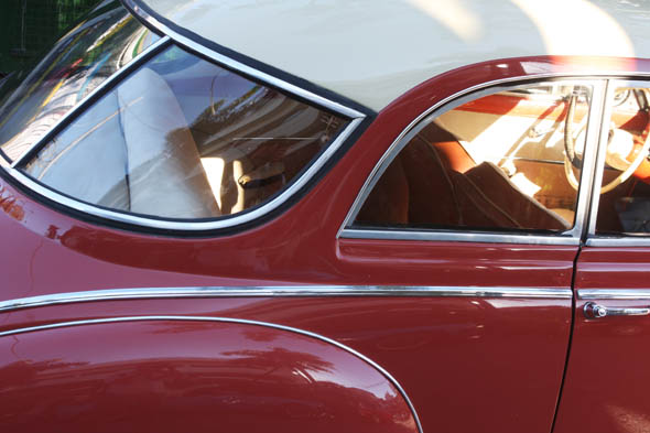 Diego Speratti, disculpa, pero tengo que hacerte una correccion, no se trata de un Autounion 1000S Coupe ya que ese modelo era el que poseia parabrisas panoramico y se hizo inmediatamente despues que este modelo. Esta Coupe es una Autounion 1000 Coupe de Luxe 1958 (unico año en que se fabrico). Hasta el año 57 las coupes tenian motor de 900 CC y se las denominaba 3=6, tenian la puerta «suicida» y venian en variante Sedan 2 puertas y coupe de lujo. En el 58, año que se cambia la denominacion DKW por Autounion, se cambia entre otras cosas la apertura de puertas y se sacan 3 modelos, el sedan 2 puertas (con motor 900), la DKW 900 Coupe 1958 y el Autounion 1000 Coupe de Luxe (que tenia motor 1000cc, paragolpes croamdos, otras llantas, otra tapa de baul, mas detalles de lujo y acabados cromados y en aluminio pulido). Al año siguiente se lanza el modelo panoramico llamandolo Autounion 1000S Coupe.