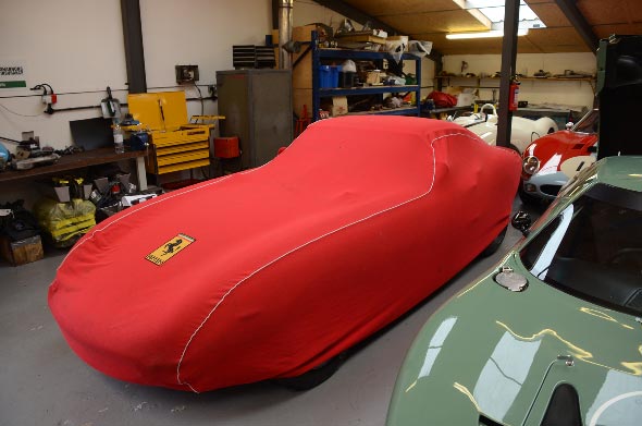 Dentro del taller había varias cosas lindas además de las TZ. Debajo de una funda roja una Ferrari 275 GTB/C, detrás un Aston Martin DB3S, por otro lado un par de Chevron, también un E Type Lightweight, un Alfa GTA y la perla, la Ferrari 250 GTO ’64 de Anthony Bamford.