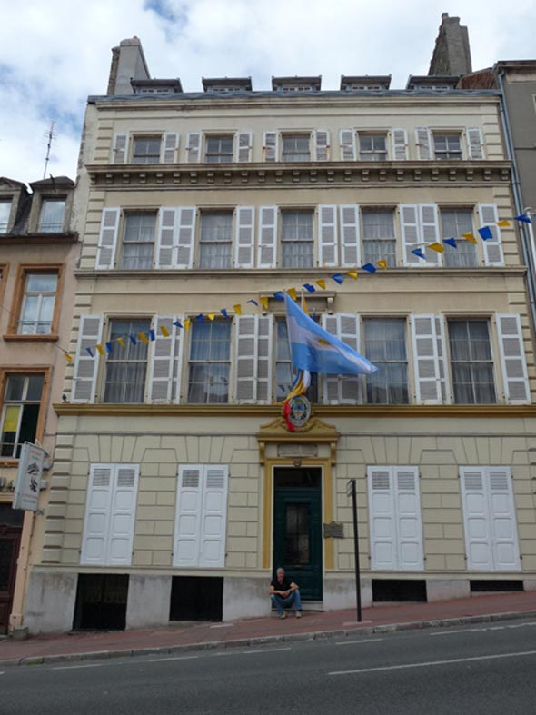 La foto sentado en la entrada de la casa es todo un estudio de angulos muy frances. La casa esta horizontal y a unos 6 grados con respecto a la calle. Monsieur de Meurville parece estar perpendicular a la Promenade San Martin y a 6 grados del marco de la entrada, que esta vertical.Una inquietante demostracion del teorema de Tales y de la ley de Newton al mismo tiempo…