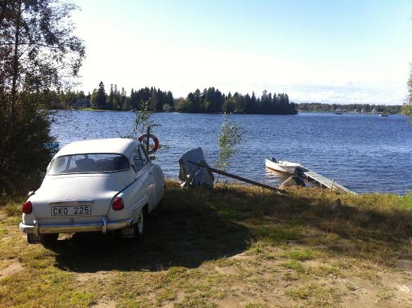 Hernán Charalambopoulos - 13/09/2011Nada más escandinavo que ver bosque, lago, muelle, artefactos para la pesca y un Saab (en este caso un 96) como testigo pero a la vez protagonista del cuadro. Lástima que en la imagen de abajo (también aportada por Nacho) aparece un colado que despoja de todo encanto a tan poético atardecer. Gracias.