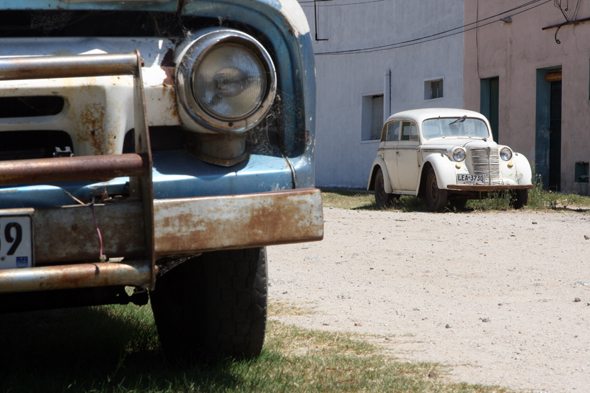 Opel Kapitän c. 1952 y Dodge Kingsway sedán 1955, Nueva Helvecia, Colonia, Uruguay.