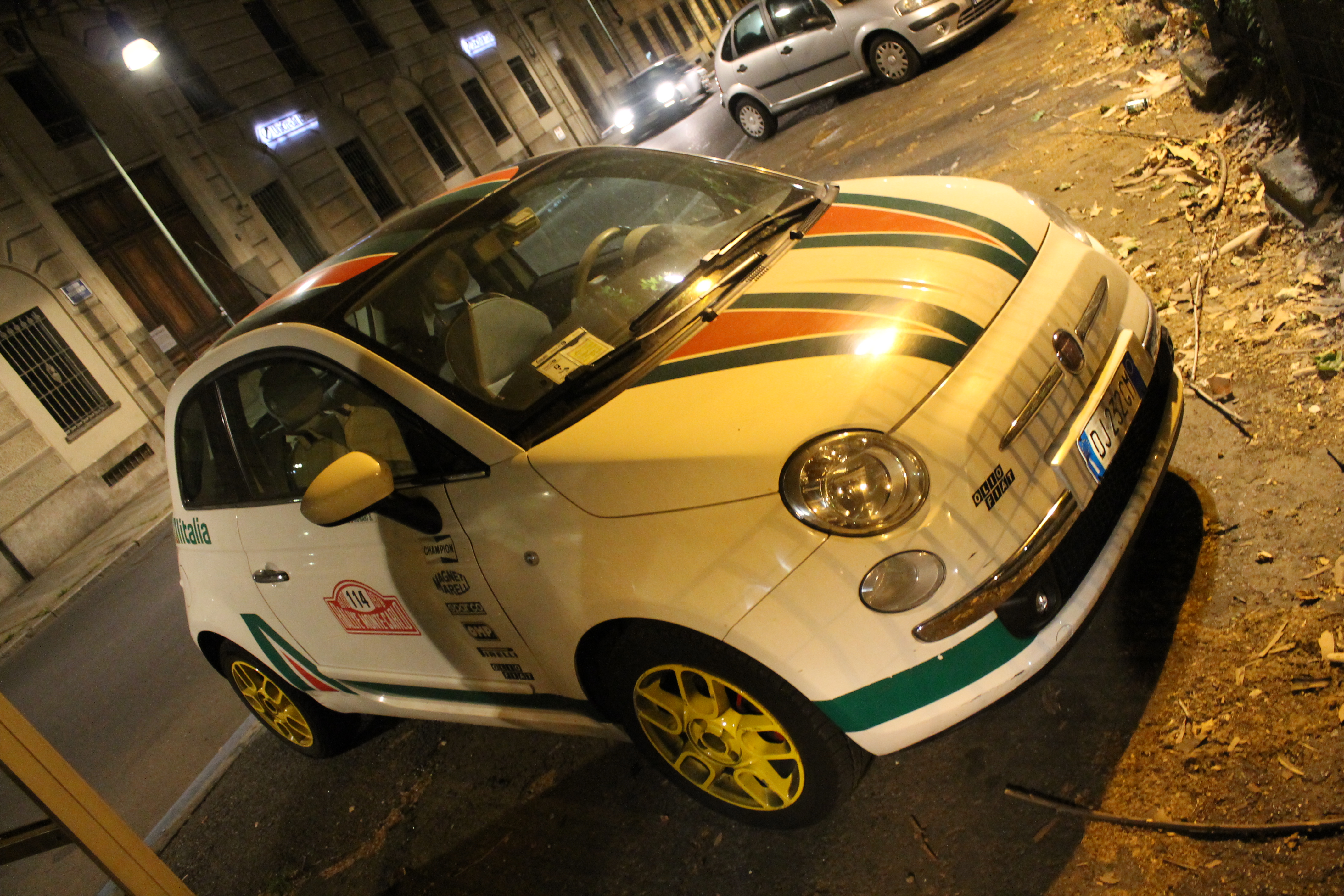 Hernán Charalambopoulos - 16/07/2012Corso Vittorio Emanuelle, Torino, hace un rato. Estuvimos junto a Leandro Martin (proyecto de buen diseñador oriundo de San Justo, Pcia. de Buenos Aires), rematando las líneas de un auto al que estamos encontrándole la vuelta. Diez de la noche, y muy cansados, lo dejo en la parada del bondi y al llegar nos encontramos con esta Cinquecento «Alitalia».