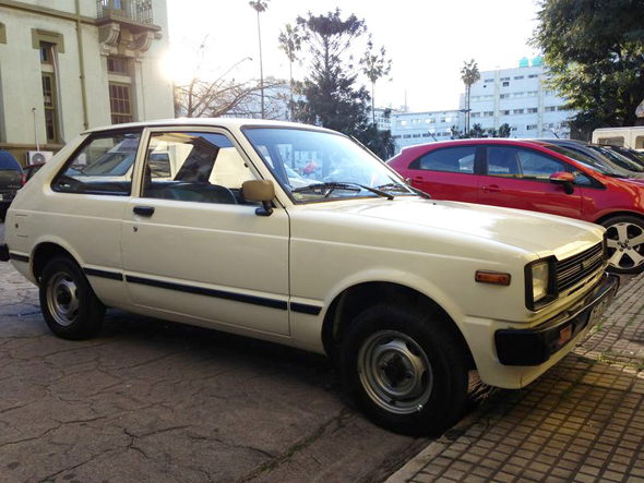B Bovensierpien - 21/07/2013Toyota Starlet. Según algunos «el mejor auto fabricado por Toyota». Me dieron ganas de comprarlo, pero por las dudas ni llamé al número. Lo encontré adentro del estacionamiento del Hospital Pereira Rossel en Tres Cruces, Montevideo, Uruguay.