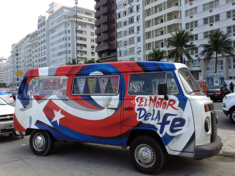 Del lado trasandino tenemos una Kombi Surfer que habita por estos días en Botafogo, una verde que duerme frente a Praia Vermelha y la Kombi «El Motor de la Fe», una especie de santuario del fútbol transandino que suele estacionarse frente a la pantalla del «Fifa Fun Fest», en las playas de Copacabana.
