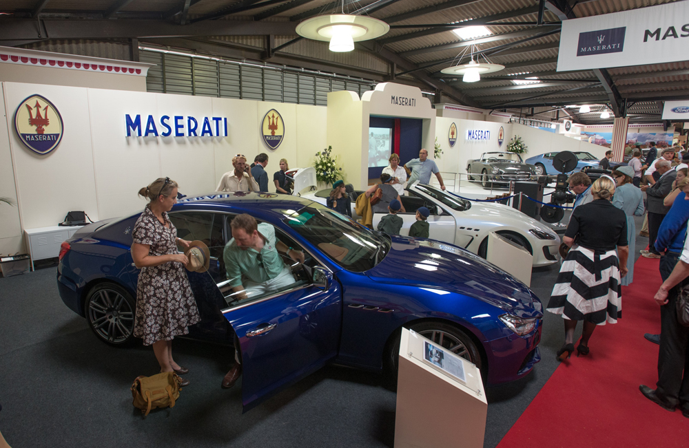 Una cantidad récord de público alentado por los días soleados que acompañaron esta edición del Revival, pudo apreciar todo lo que Maserati preparó junto a los organizadores para el festejo de su primer siglo de vida. La marca decidió, como corresponde, mostrar su orgulloso pasado, pero tampoco quiso desaprovechar la chance de mostrar su presente y su futuro. Dentro de la construcción art decó que recuerda al Earls Court Exhibition Centre y los London Motor Show que allí se organizaban en los años cincuenta y sesenta, se mostraban un reluciente 3500 GT Vignale Spyder de 1961 y un Ghibli Tipo AM115 de 1969. Como laderos tenían allí la compañía de un GranCabrio MC y el recientemente lanzado Ghibli, un sedán ejecutivo que apunta a permanecer por muchos años en el catálogo de la marca del tridente.
