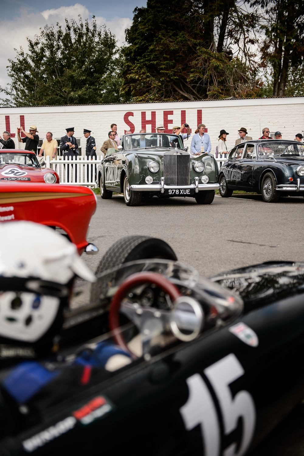 Rolls-Royce también estuvo representada en la pista del circuito a lo largo del fin de semana, con el bello Silver Cloud II cabriolet 4 puertas color verde humo, carrozado por H.J. Mulliner, utilizado por la dirección de las competencias automovilísticas.
