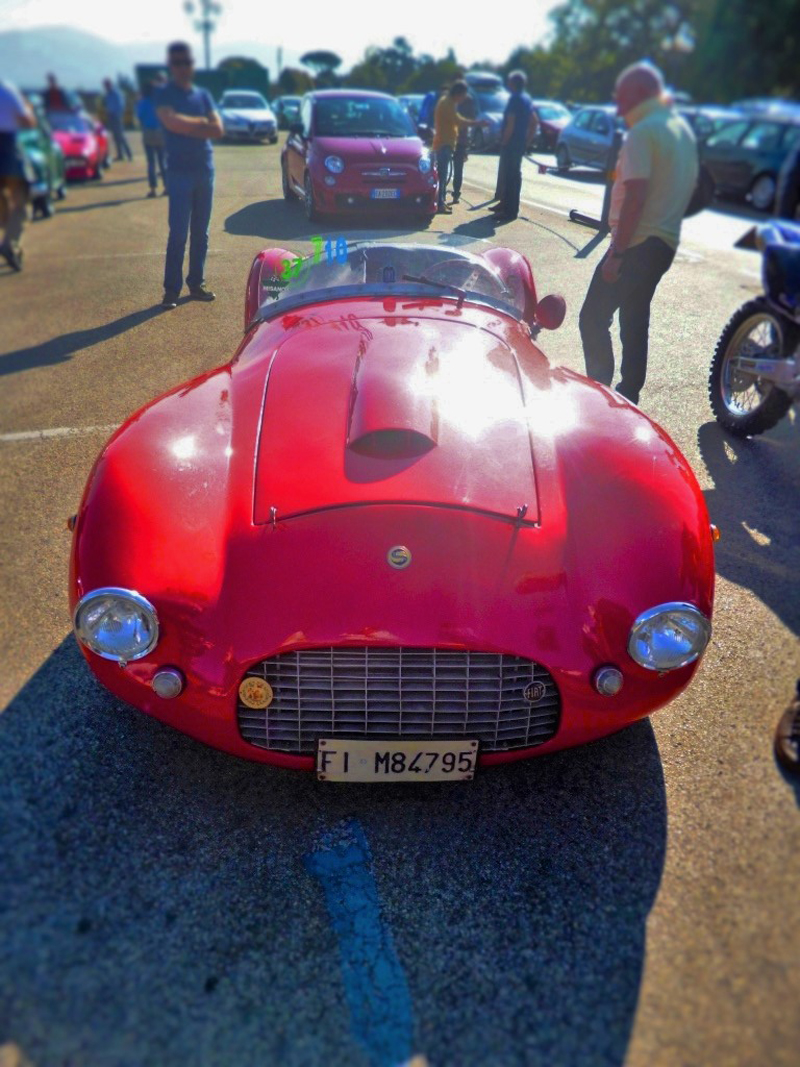 Qui-Milano - 22/10/2014Intrigante barchetta Stanguellini con motor Fiat 1100 de los años cincuenta, seguramente modificada a lo largo de los infinitos años de carreras. La trompa, declaradamente inspirada en una Ferrari 166 Touring, con su parrilla “egg-crate”, es fruto de la imaginación de algún “battilastra” de pueblo después de haber destruido la original contra algo más sólido que el aire…