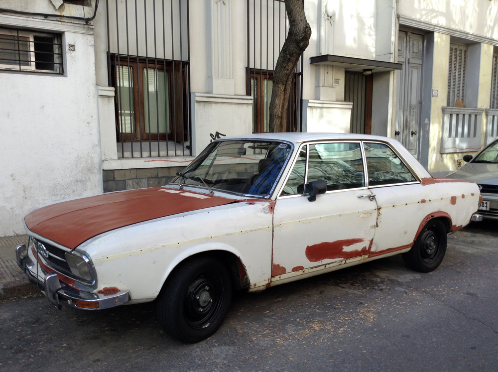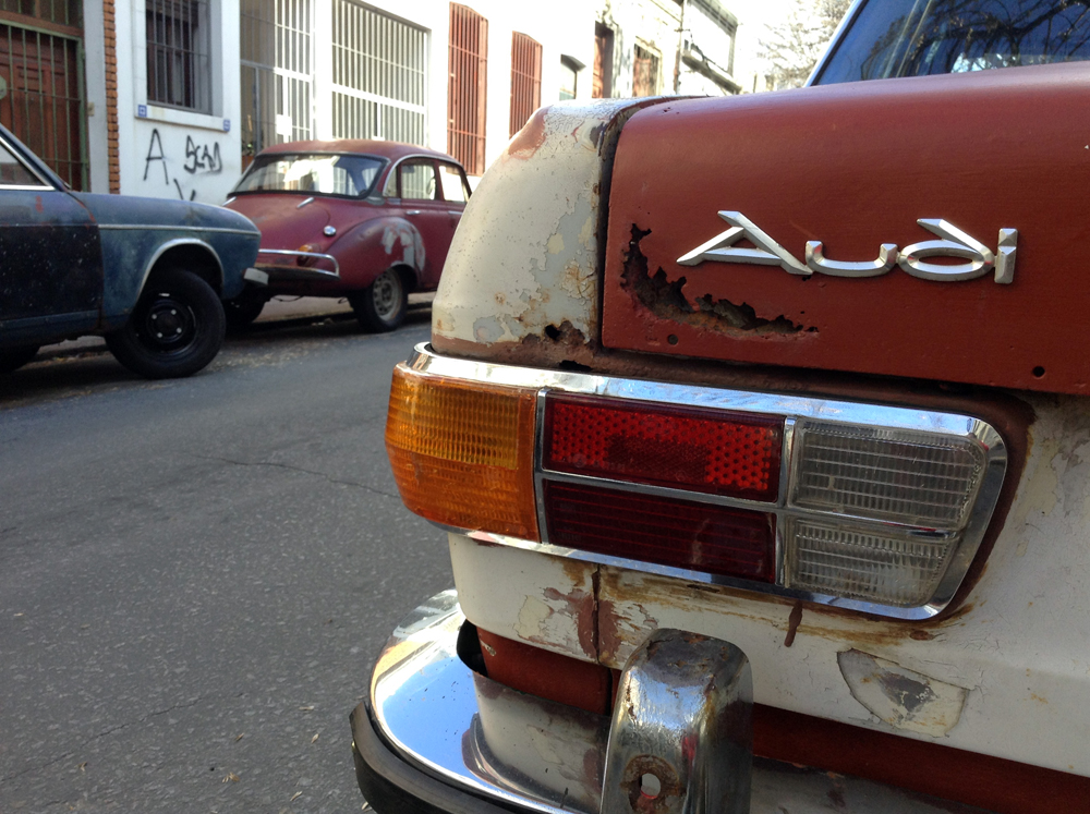 De vacaciones hace unos años fotografié el mismo Audi 100, un poquito en mejor estado, estacionado justo donde ahora está el AutoUnión.