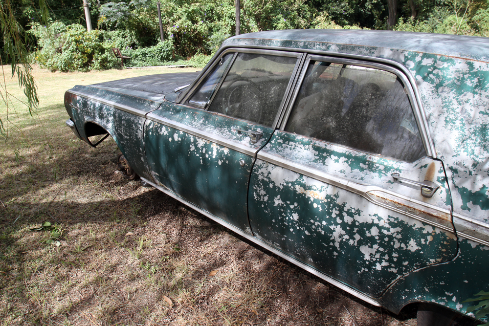 Este Coronet se volvió un «vegetal» en el fondo de una casa de la Avenida Doroteo García. Se trata de un modelo 1965, el año en que la denominación Coronet revivió después de cinco años de ostracismo.
