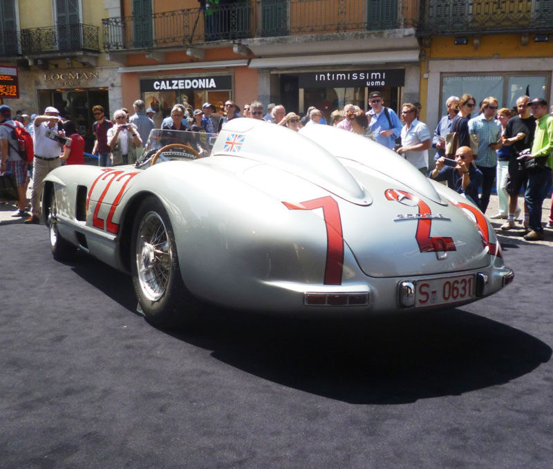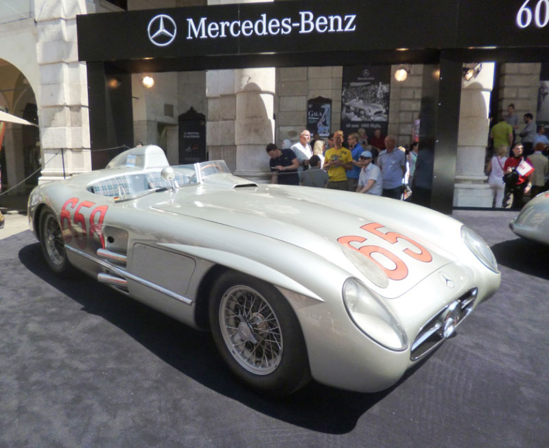 Mercedes Benz tirò la casa por la ventana y se trajo tres de las cuatro 300 SLR que corrieron en ella, la 300 SLR s/n 0004/55 número 722 de Sir Stirling Moss, la n° 658 de Juan Manuel Fangio que llegó Segundo ( a casi media hora) y la n° 704 de Hans Herrman (abandonò cuando era segundo) y ademas trajo a dos de esos tres pilotos, Moss (85 años) y Herrmann (87 años), y los puso a bordo de sus respectivos vehículos, estuvieron en la rampa de largada, emocionando los presentes con el sonido impresionante de esos 8 en línea, multiplicados por tres…